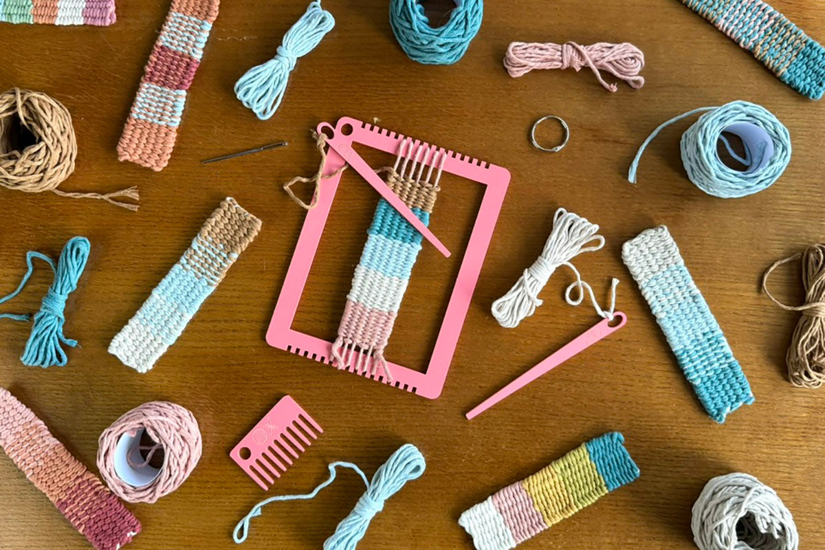 Give a creative, cosy gift: our Intro to Weaving Kits include a frame loom, tools, yarns and a detailed guide, so beginners can relax and weave their first piece over the holidays.