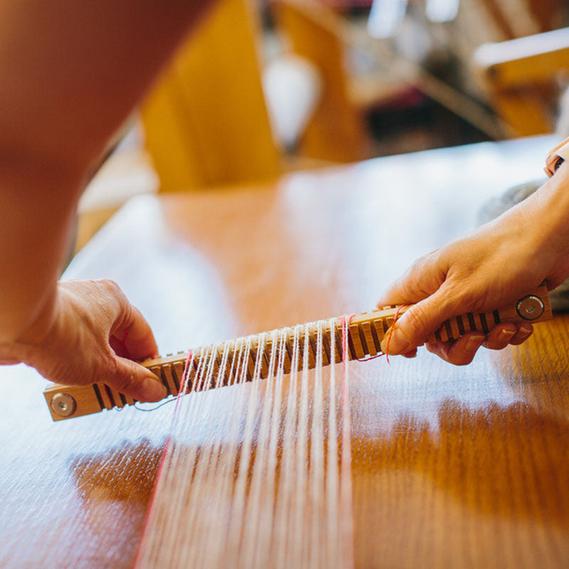 - Position the extra Double-Sided Heddle Bar in a lower position on your frame loom to act as a guide for your warp and avoid pulling in the sides when weaving