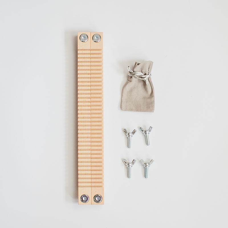 Our Double-Sided Heddle Bar is the optional Oxford Frame Loom accessory that will take your weaving to the next level! Featuring our unique spacing on BOTH sides of the heddle bar, this first-of-its-kind design feature will enable to you to create more complex woven designs and products.