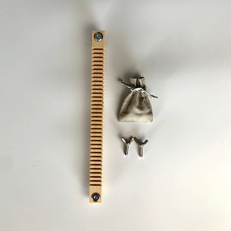 - Fully adjustable positioning on The Oxford Frame Loom as the heddle bar is attached to the side frames of the loom using wing nuts (the same system as on The Oxford Frame Loom)