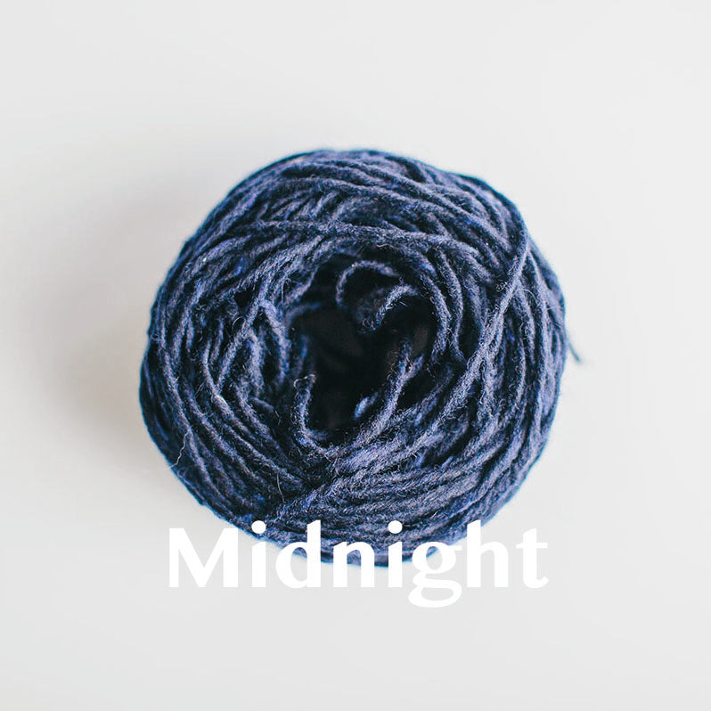 This unique collection of wool yarns offers weavers a stunning alternative to our super chunky yarns and wool roving. Spun with small flecks of colour blending into the deep hues, these yarns have great depth. At a distance they appear as a solid colour, but up close their complexity will help to create stunning woven designs.