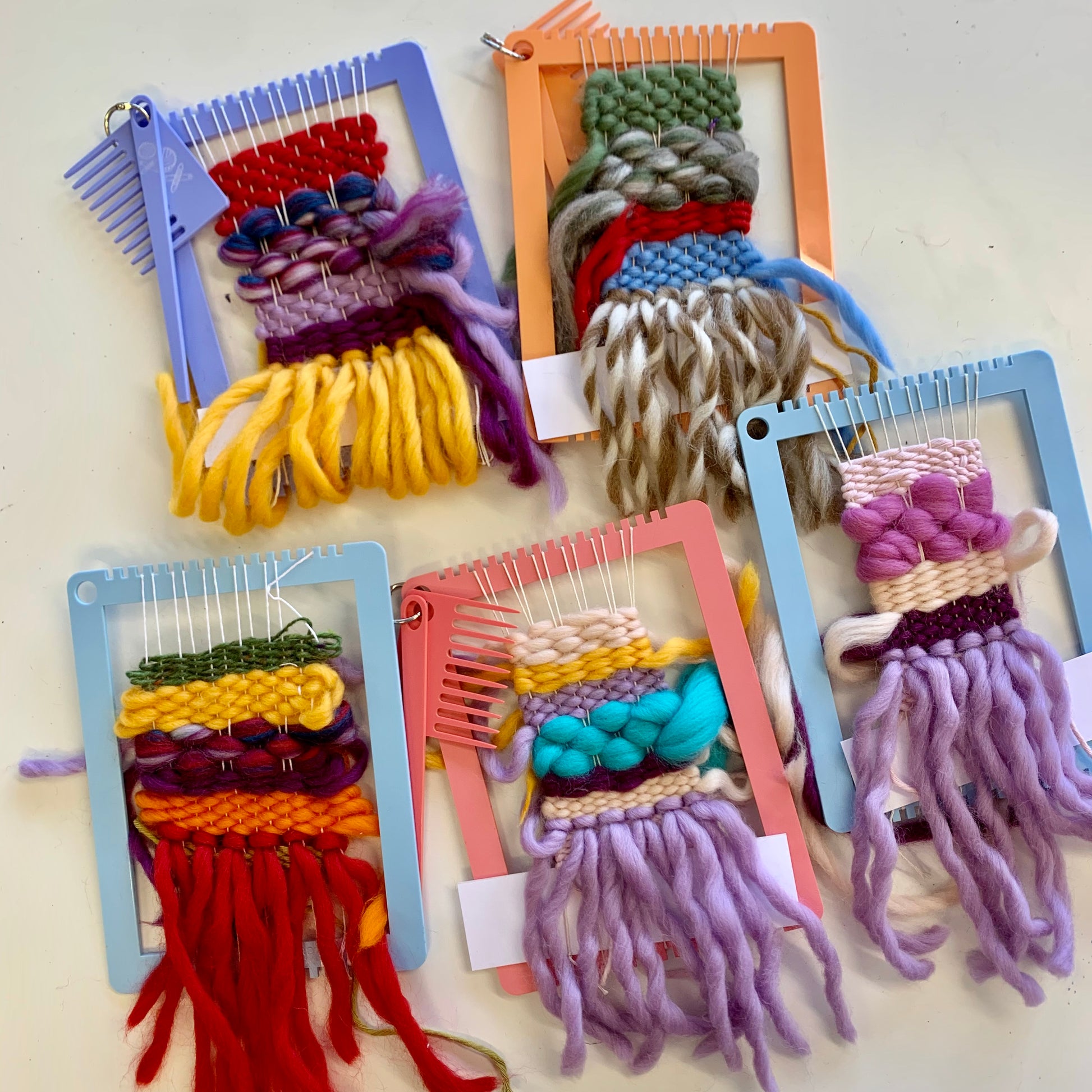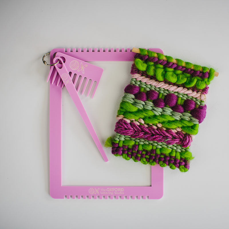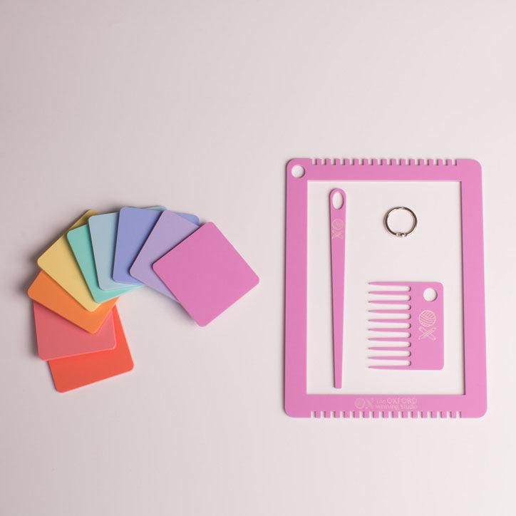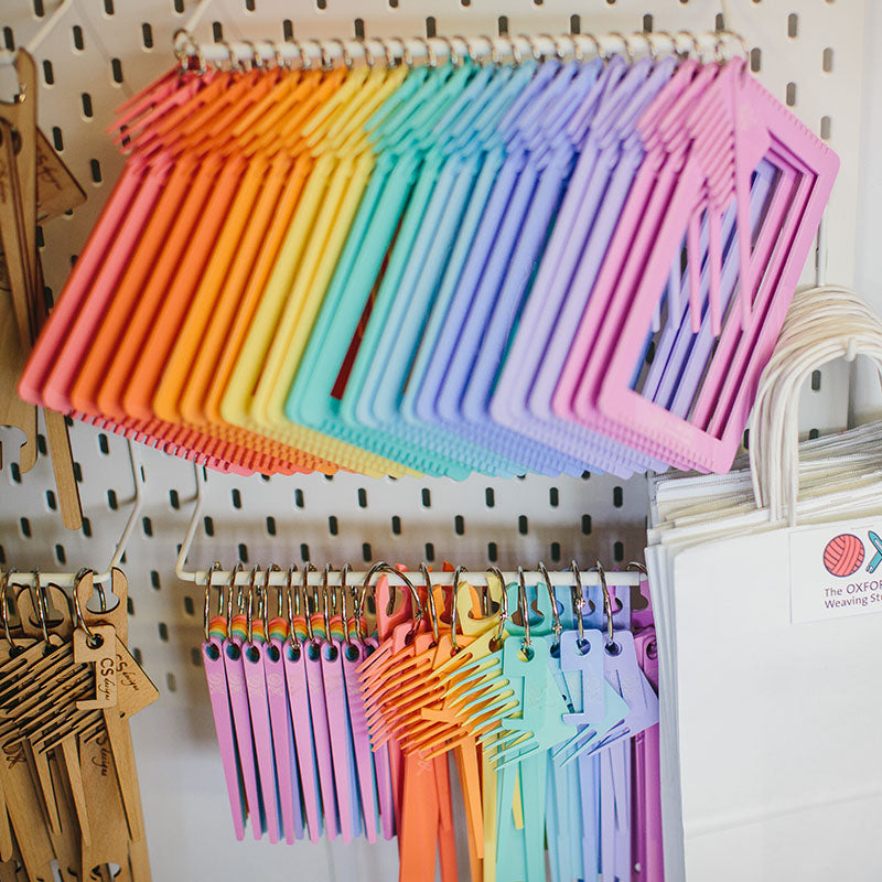 Our 'Rainbow Looms' (as they are affectionately being called) are the perfect starting point for beginner weavers or for weavers looking for a portable solution to test ideas or to bring on holiday. Think little hands or smaller projects like jewellery, mini wall-hangings, coasters and lavender sachets!