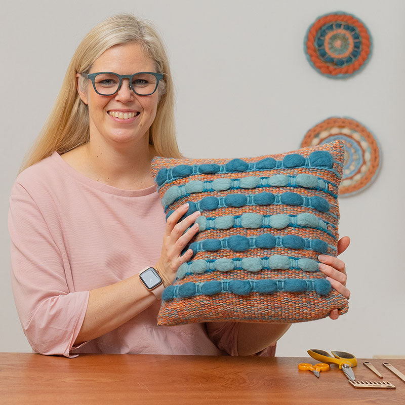 Looking to weave your own cushion at home? We have put together an amazing bundle to help you get started by curating the best of our weaving yarns and fibres in fun, coordinating colours!