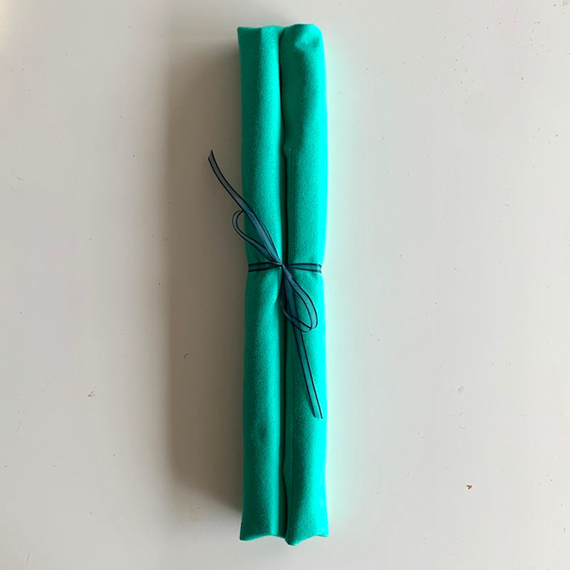 Using only the highest quality 1.2mm wool felt, our frame loom felt storage pouches have been sewn with 4 slots, one slot for each side of your frame loom when broken down. The slots are wide enough to fit most frame looms and they provide a protective barrier for the notches of the heddle bars, preventing breakage. With the flap folded over the top of the loom, folded closed and wrapped securely with the attached ribbon, the pouch provides easy access, room for any additional accessories stored inside and reduces exposure to moisture both in transit and when in storage.