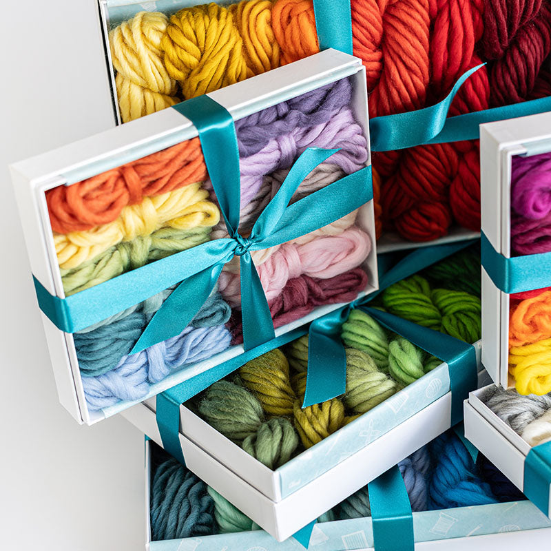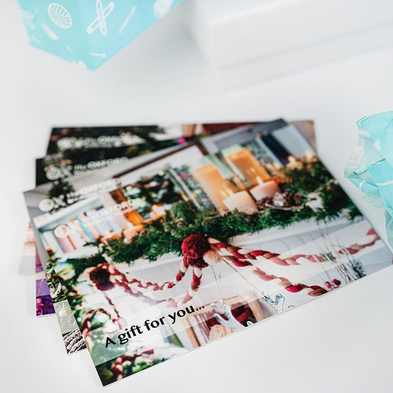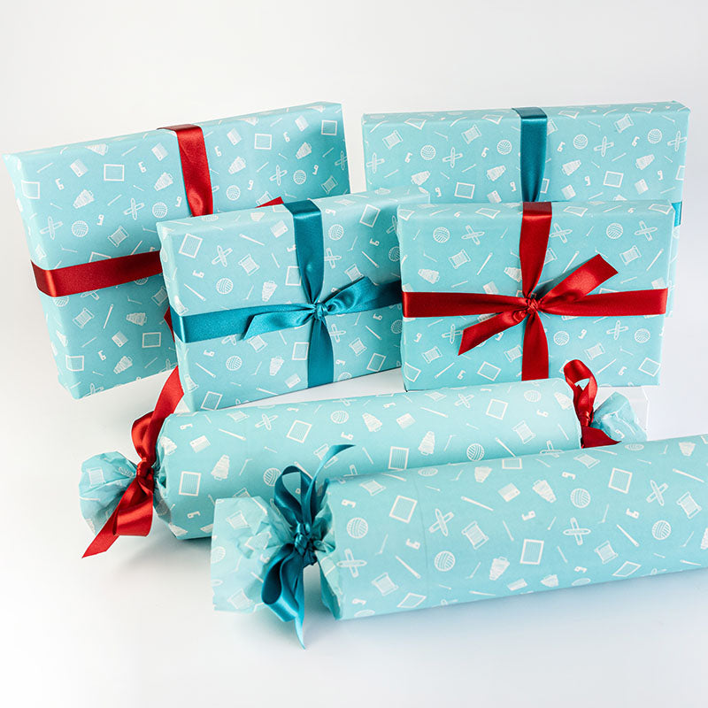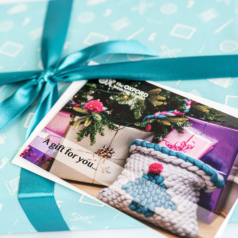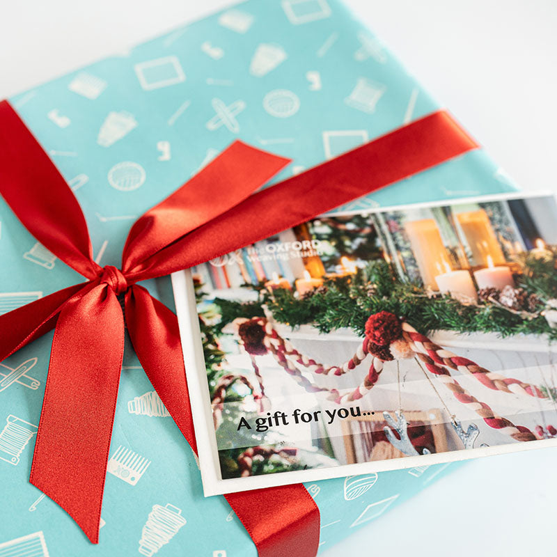 New for this holiday season, our gift wrapping service includes wrapping our sturdy, white gift boxes with our unique Oxford Weaving Studio paper, your choice of turquoise or red ribbon and a holiday gift card with your own personal message.